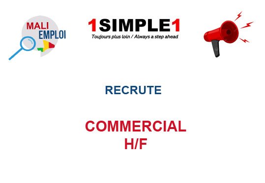 1SIMPLE1, société informatique innovante (Canada & Mali), recrute un(e) Commercial(e) dynamique et motivé(e) pour renforcer son équipe.