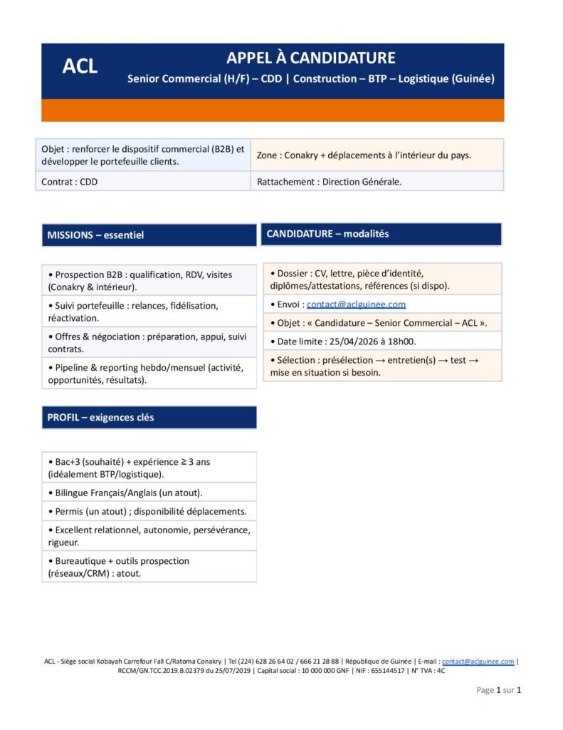 Postulez ici : contact@aclguinee.com
