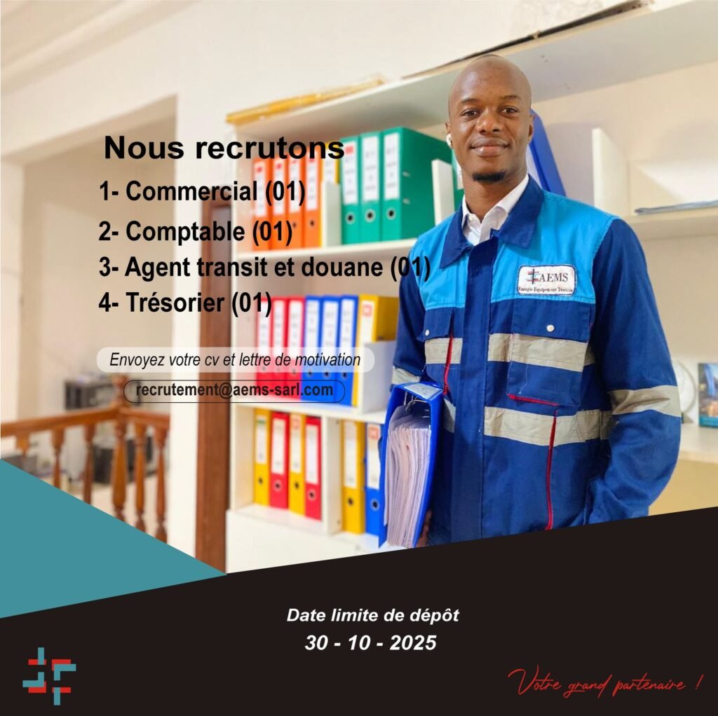 AEMS SARL recrute ! Rejoignez une équipe dynamique et ambitieuse.