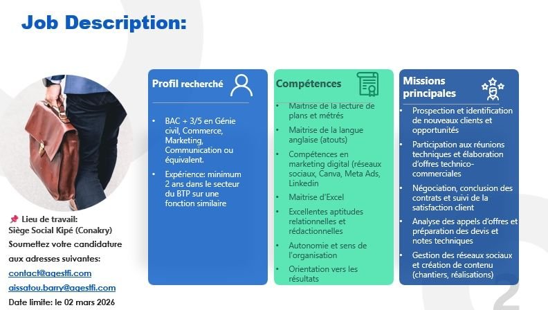 Poste basé à Conakry avec déplacements fréquents sur chantiers.