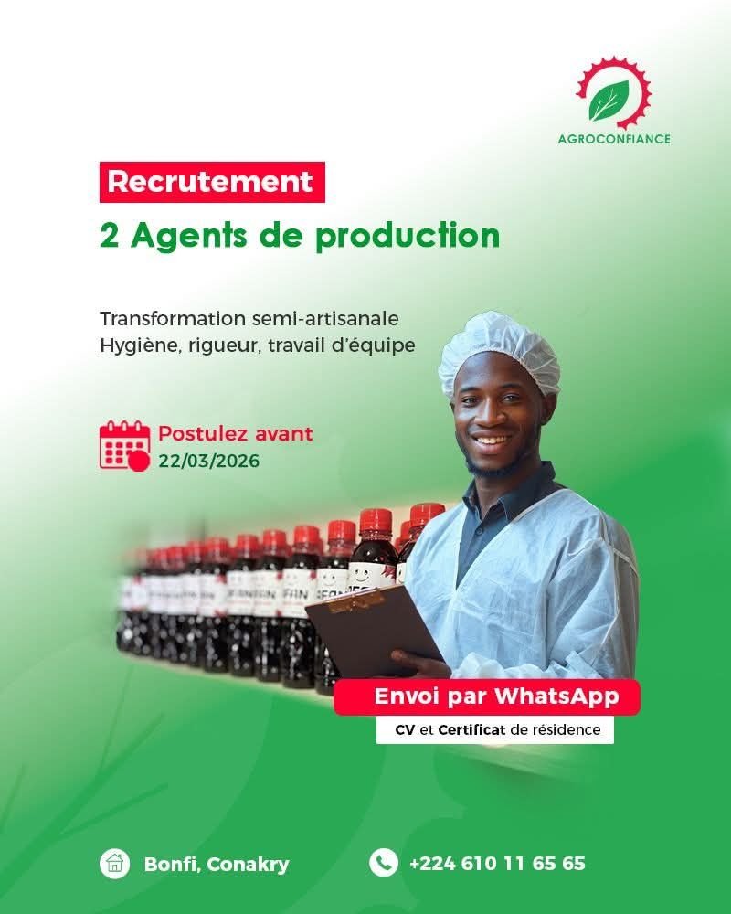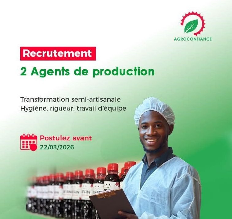 AGROCONFIANCE RECRUTE 02 AGENTS DE PRODUCTION H/F
