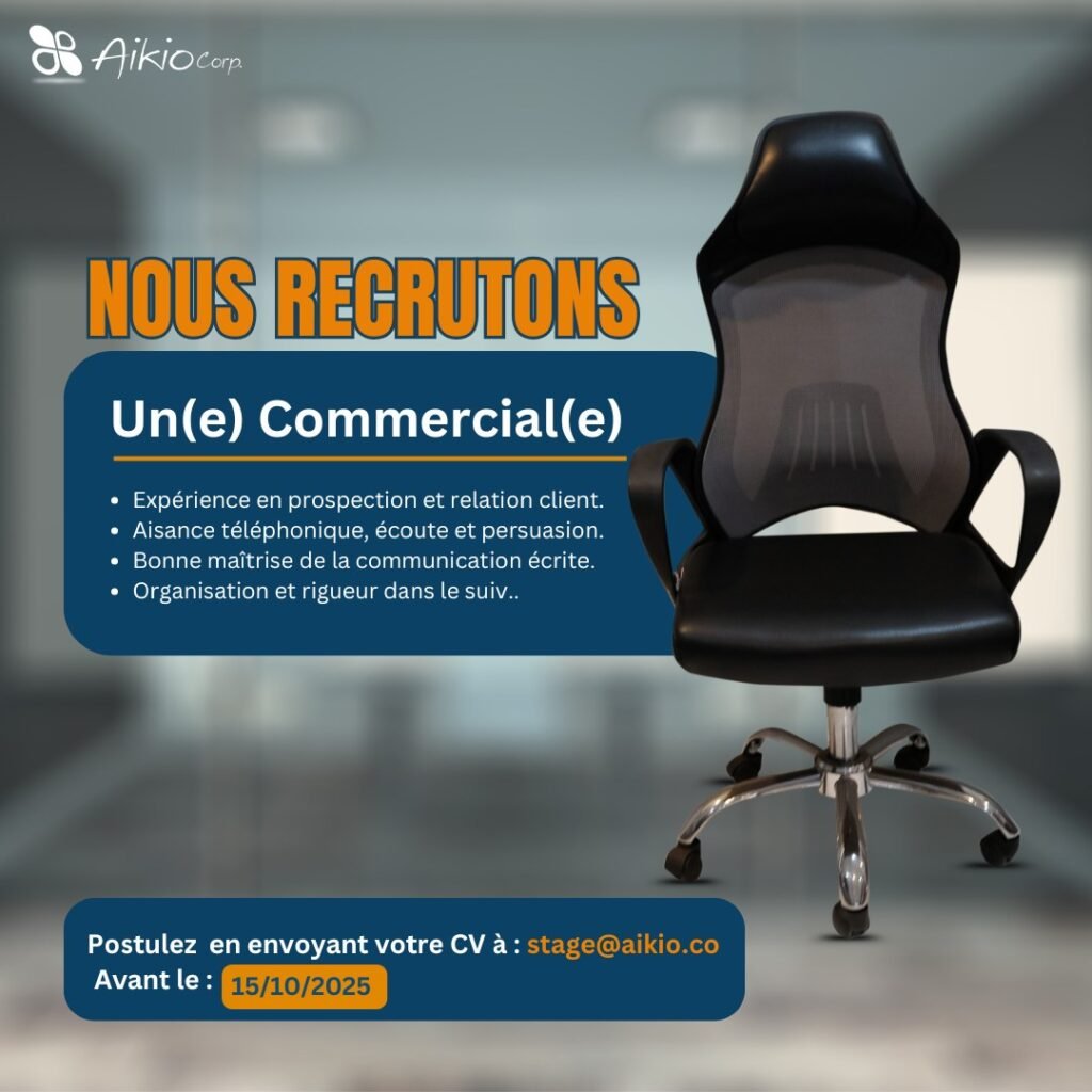 Nous recrutons un(e) Commercial(e) motivé(e) pour rejoindre notre équipe à Bamako.