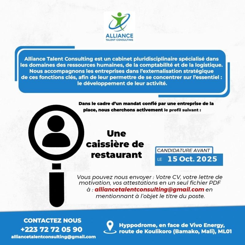 ALLIANCE TALENT CONSULTING RECRUTE CAISSIERE DE RESTAURANT