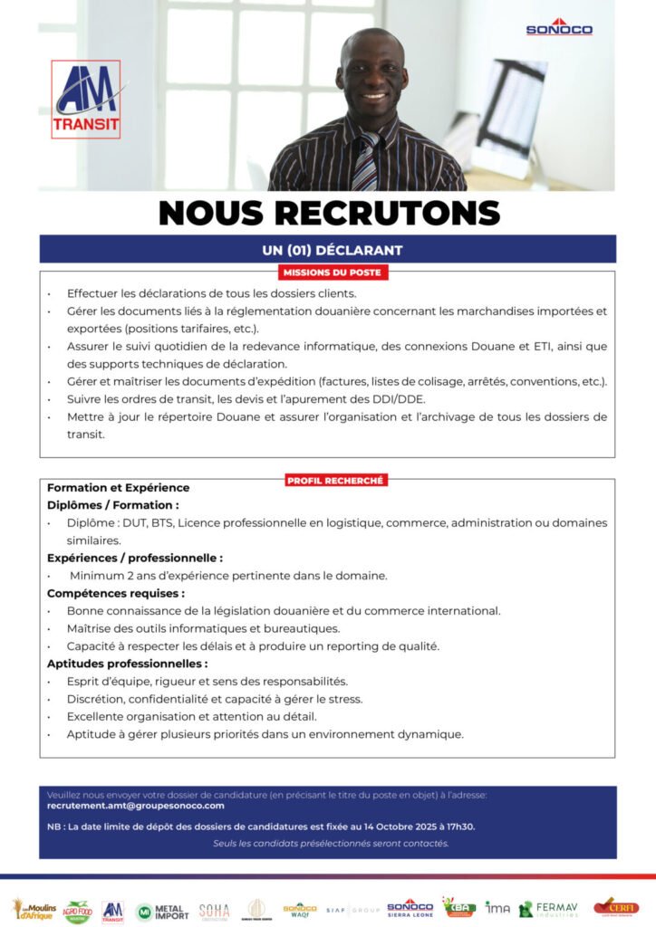 NOUS RECRUTONS UN (01) DÉCLARANT