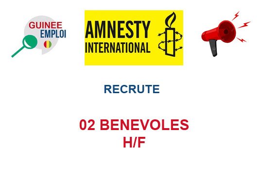 Amnesty International Guinée, mouvement de défense et de promotion des droits humains, recherche 2 bénévoles pour appuyer son équipe dans le domaine de la communication.