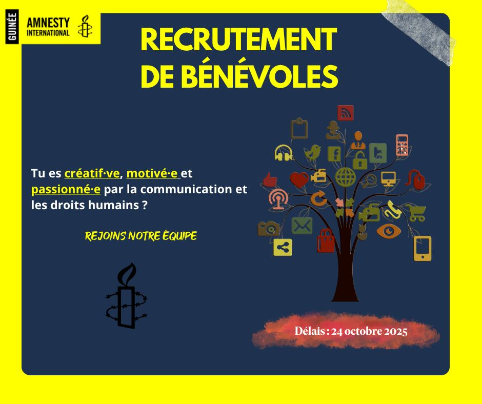 👉Rejoindre l’équipe d’Amnesty Guinée, c’est contribuer à une cause noble et acquérir une expérience enrichissante en communication et plaidoyer.