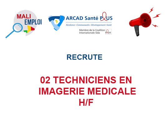 recrutement@arcadsanteplus.org et doit porter la mention ou l’objet : « Appel à candidature pour le poste de Technicien en imagerie médicale », en précisant la localité c’est-adire Kayes ou Sikasso. Les candidatures