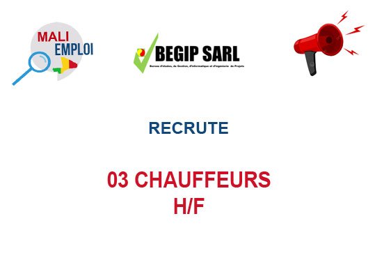 Le cabinet BEGIP (Bureau d’Etudes de Gestion, d’Informatique et d’Ingénierie de Projets) recherche, au compte d’un organisme, trois (03) chauffeurs avec les profils suivants :
