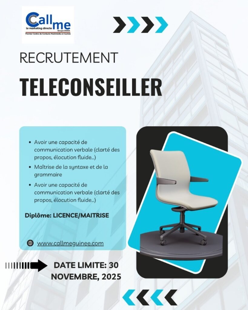 Prêt(e) à relever le défi ? Rejoins-nous maintenant en cliquant sur ce lien : https://callmeguinee.com/stage/teleconseiller/1