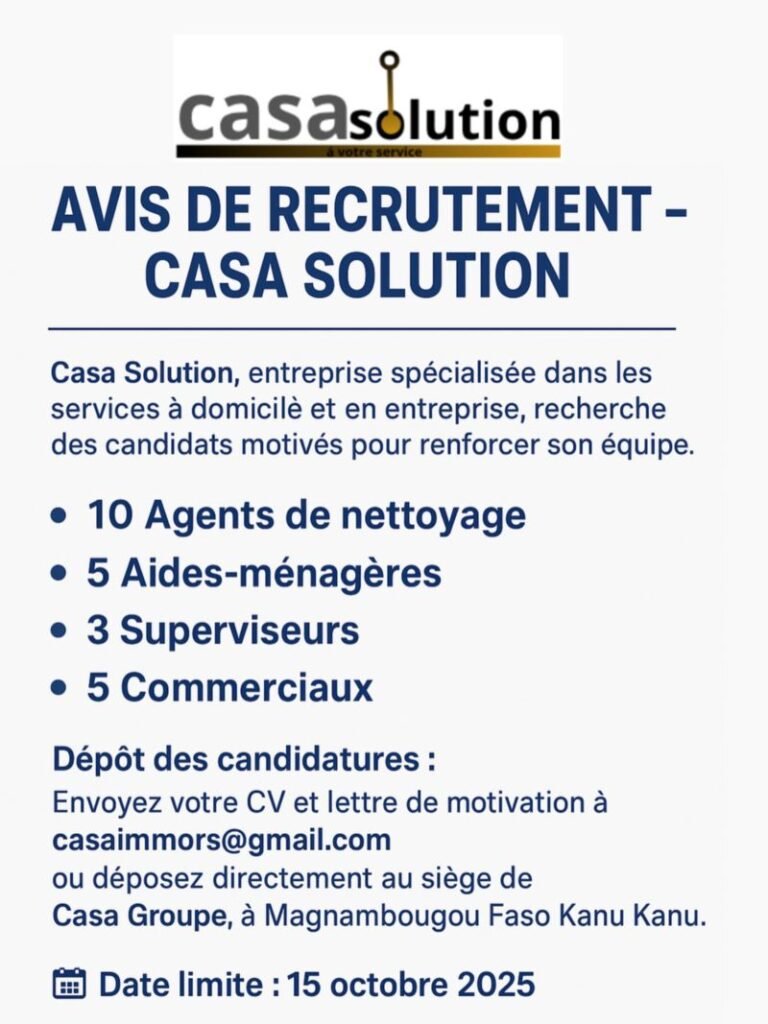 📩 Envoyez votre CV + lettre de motivation à : casaimmors@gmail.com