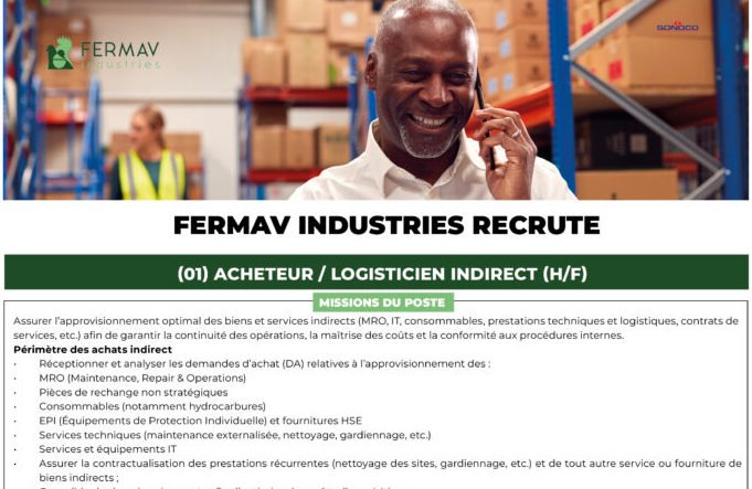 Postes Nombres de Postes Expériences exigées Lieu de Travail OFFICIER LOGISTIQUE 01 Profil Recherché• Formation : Diplôme de licence ou technique en transport, logistique ou mécanique automobile;• Expérience : 2 ans ou plus à un poste similaire, idéalement dans un environnement minier.Compétences clés :• Maîtrise des outils informatiques (Excel pour le suivi des coûts et […]