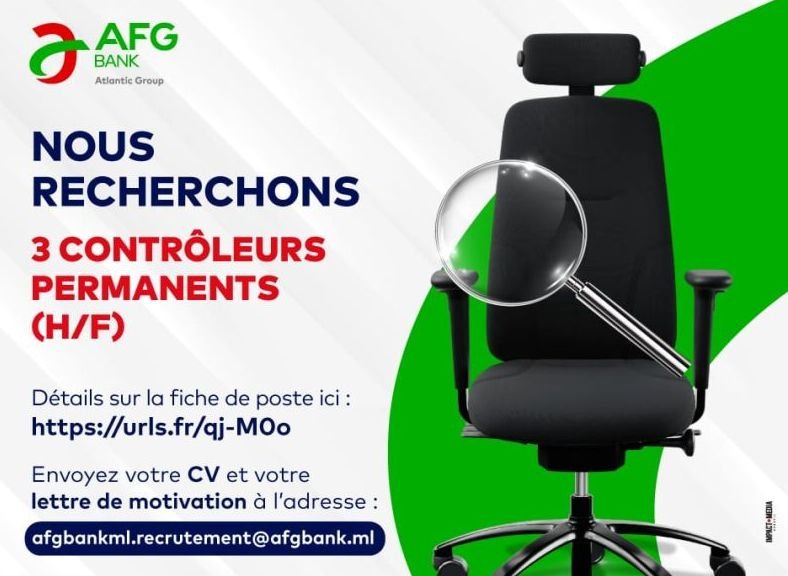 📢 AFG Bank recrute !Nous sommes à la recherche de 3 Contrôleurs Permanents (H/F) pour rejoindre notre équipe. 📌 Vous êtes rigoureux(se) et organisé(e) ?📌 Vous souhaitez évoluer dans une banque en pleine croissance ?➡️ Consultez les détails de l’offre ci-dessous : ➡️ Envoyez votre CV et lettre de motivation et mentionner le titre exact […]