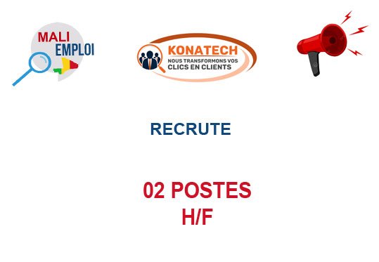 Konatech recrute-UN(E) COMMERCIAL(E) POUR LE CLOSING-UN(E) COMMUNITY MANAGER STAGIAIRE ENVOYEZ VOTRE CANDIDATURE Àrecrutement@konatech.orgRéjoignez-nous ! DATE LIMITE6 MARS 2026info@konatech_agency