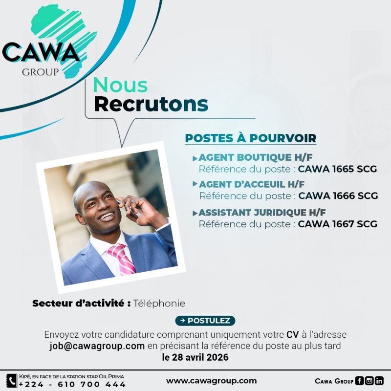 CAWA Guinée recrute plusieurs postes pour une entreprise spécialisée dans le secteur de la téléphonie basée en République de Guinée