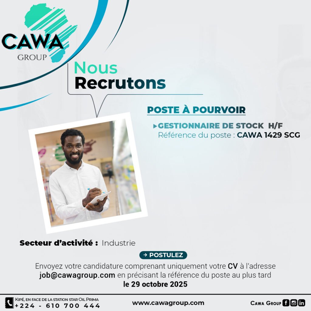 CAWA Guinée recrute pour le compte d’une entreprise spécialisée dans le secteur industriel basée en République de Guinée.