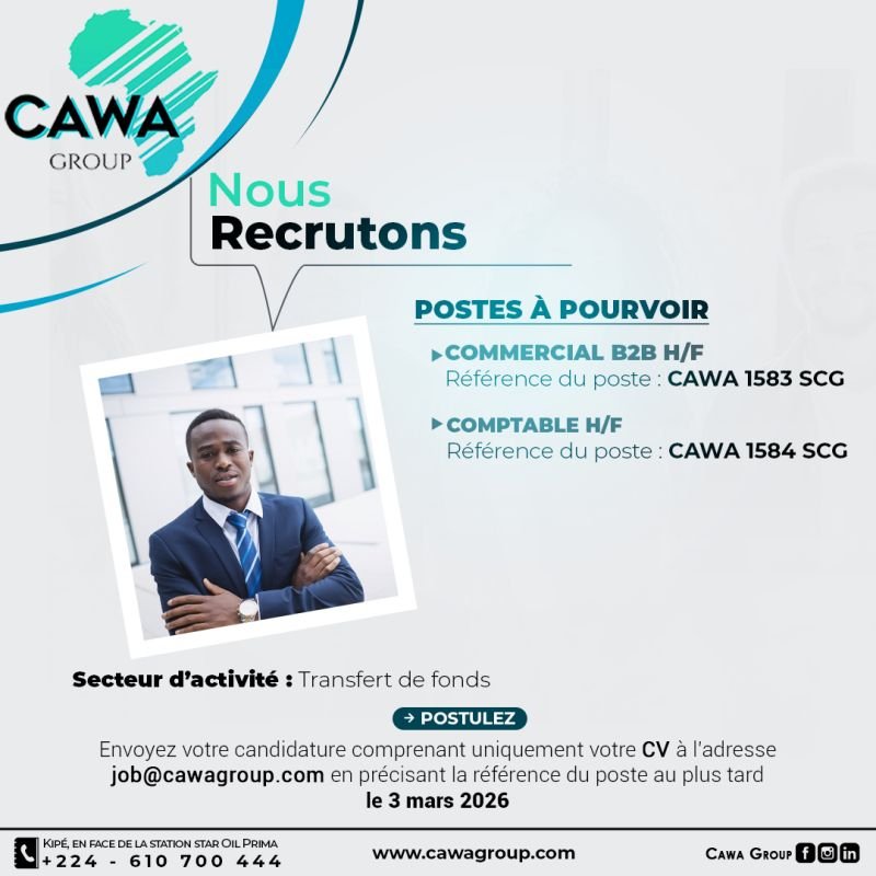 CAWA Guinée recrute plusieurs postes pour une entreprise spécialisée dans le transfert de fonds basée en République de Guinée