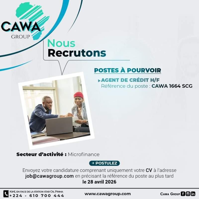 CAWA Guinée recrute pour le compte d’une entreprise spécialisée dans la microfinance basée en République de Guinée.
