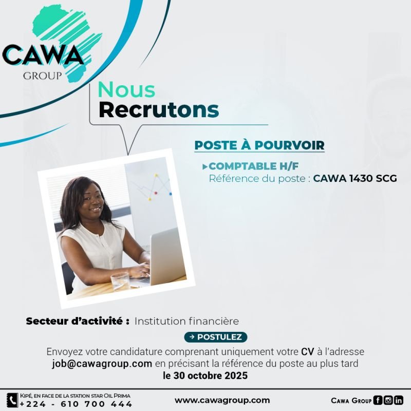 CAWA Guinée recrute pour le compte d’une institution financière basée en République de Guinée.