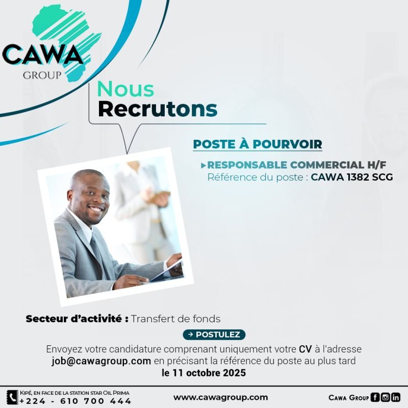 CAWA Guinée recrute pour le compte d’une entreprise spécialisée dans le transfert de fonds basée en République de Guinée.