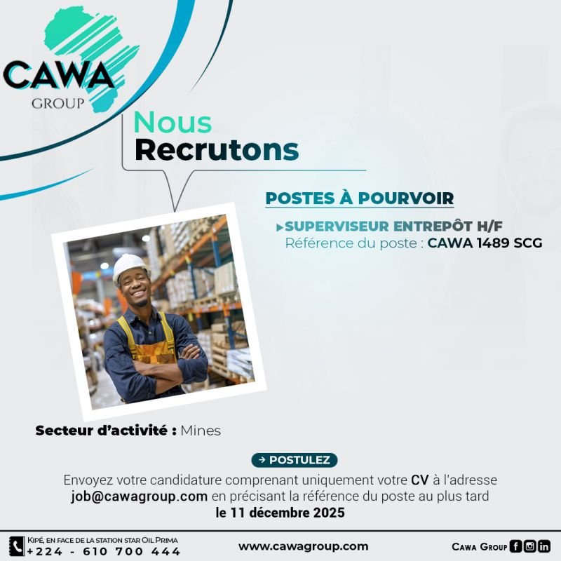 CAWA Guinée recrute pour le compte d’une entreprise spécialisée dans le secteur minier basée en République de Guinée.