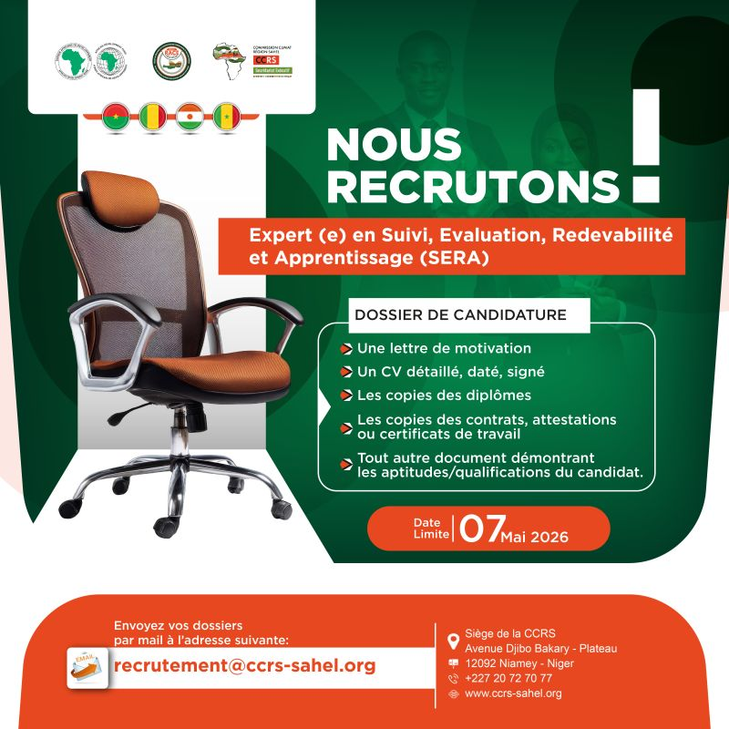 đź“© Dossiers Ă  envoyer Ă  : recrutement@ccrs-sahel.org