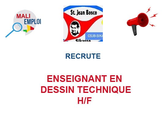 L’objectif principal est de recruter un(e) enseignant(e) de dessin technique pour le Centre de Formation Professionnelle Saint Jean Bosco de Sikasso.