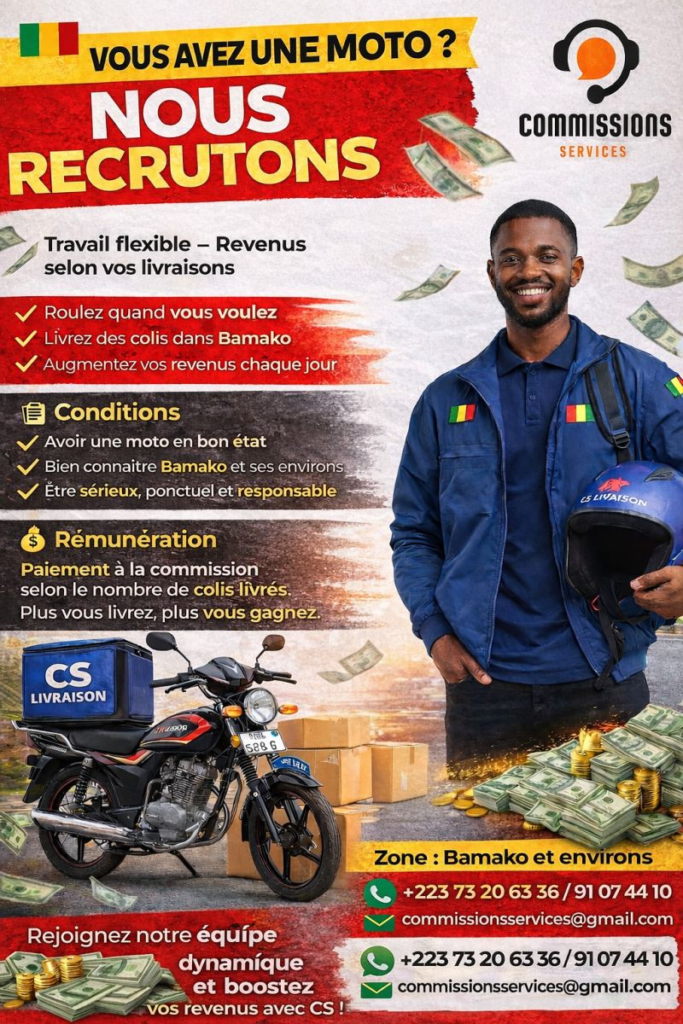 💰 Gagnez de l’argent avec Commissions Services (CS) en effectuant des livraisons de colis et de marchandises dans Bamako et ses environs.