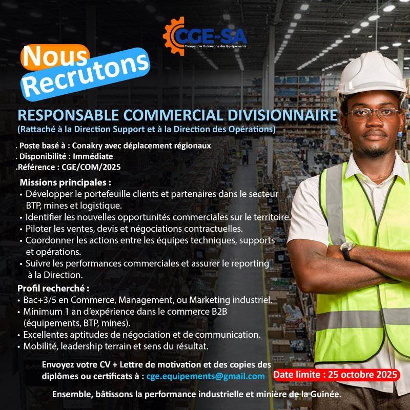 (équipements, BTP, mines). - Excellentes aptitudes de négociation et de communication.