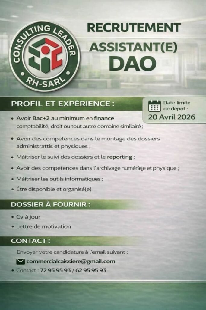 DATE DE LIMITE DE DEPOT: 20 Avril 2026