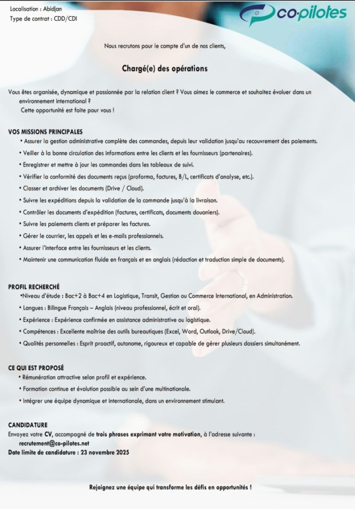 COPILOTES RECRUTE CHARGE DES OPERATIONS H/F