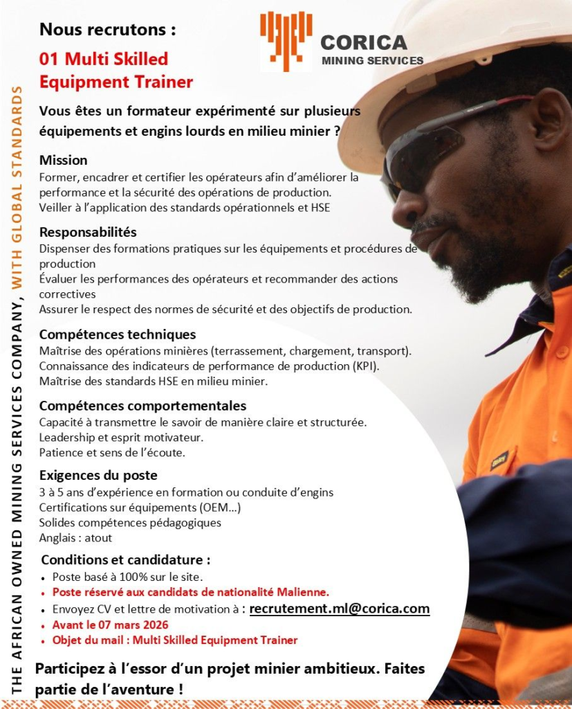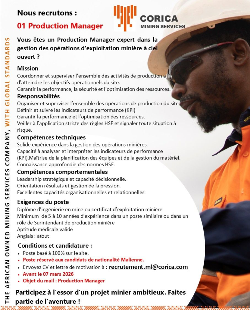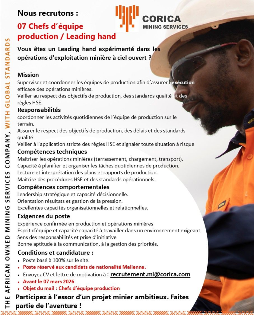 CORICA MININIG RECRUTE 13 POSTES H/F