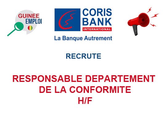 CORIS BANK GUINEE RECRUTE RESPONSABLE DEPARTEMENT DE LA CONFORMITE H/F