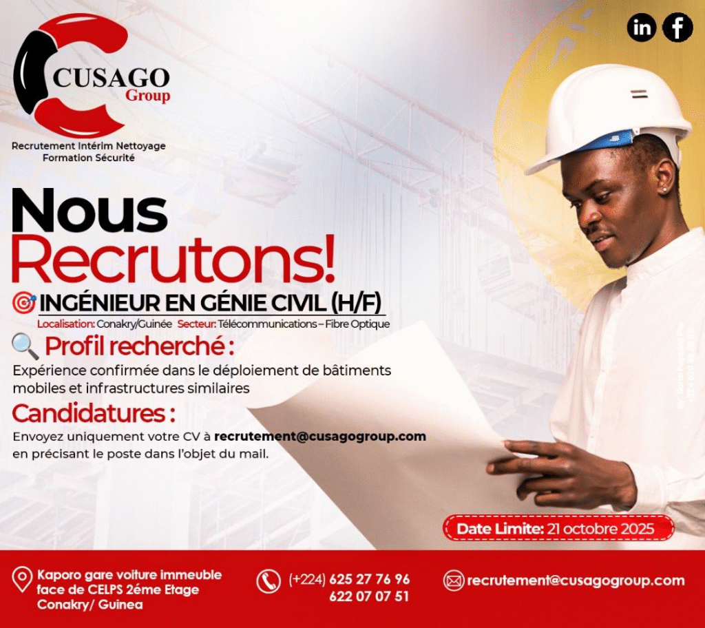 CUSAGO GROUP RECRUTE 06 POSTES H/F