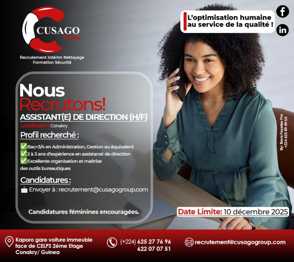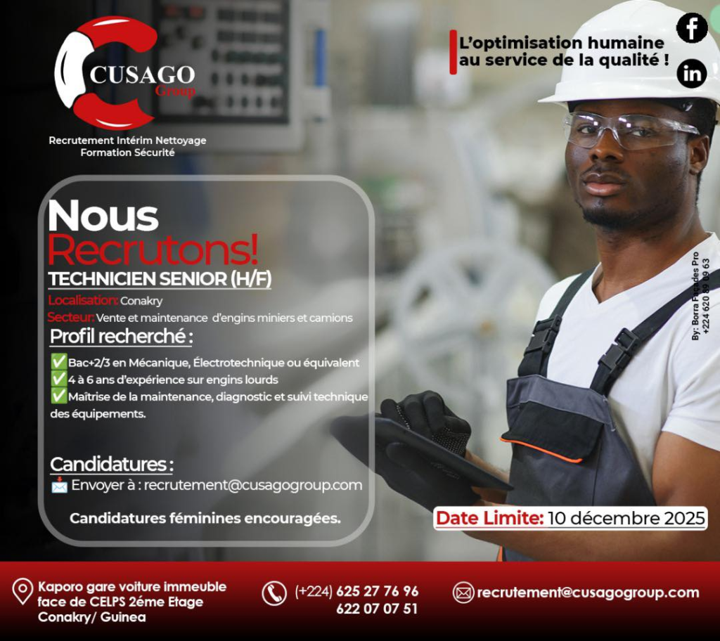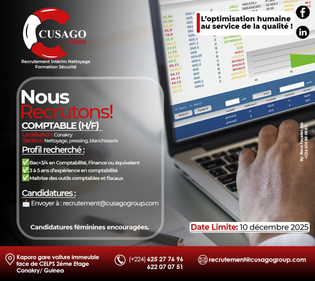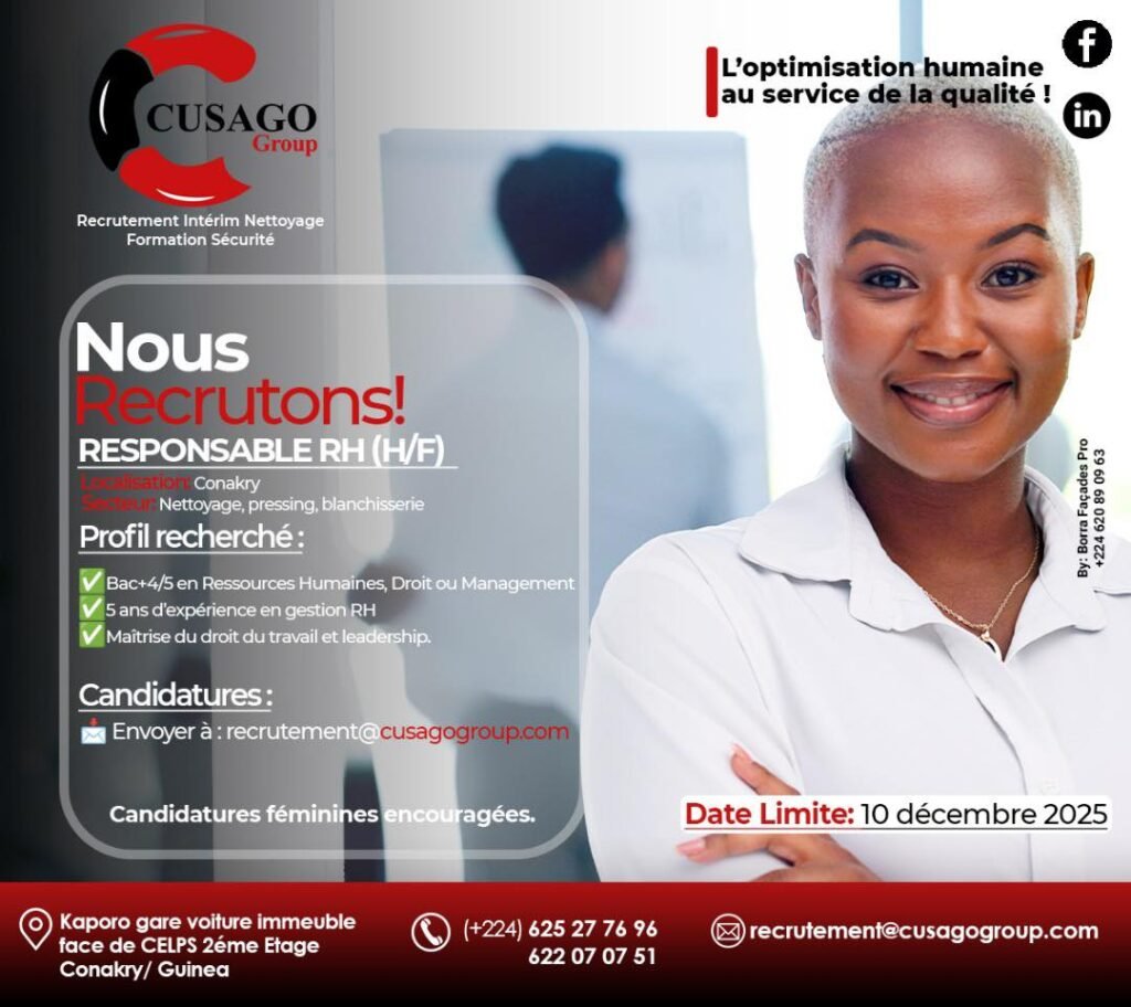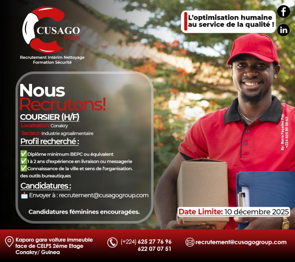 Nous ouvrons plusieurs postes à Conakry et Faranah pour nos partenaires : nettoyage, agroalimentaire, BTP, électroménager, maintenance d’engins…