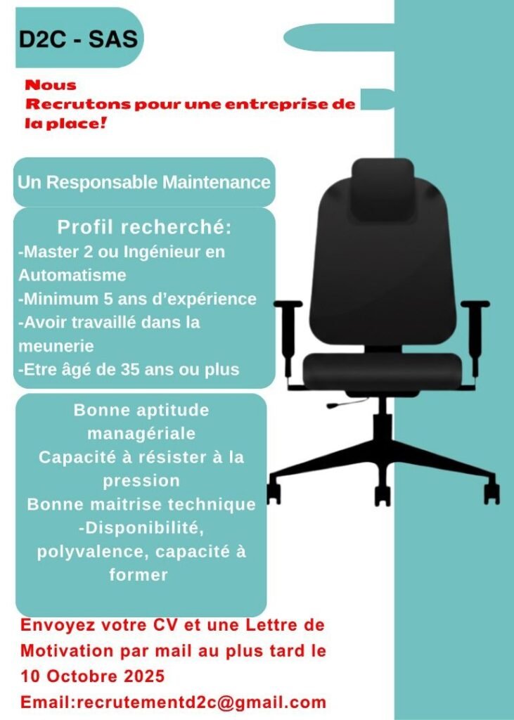 D2C SAS RECRUTE RESPONSABLE MAINTENANCE H/F