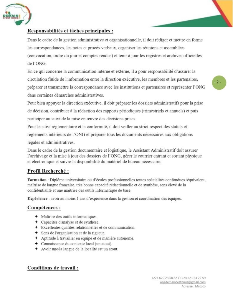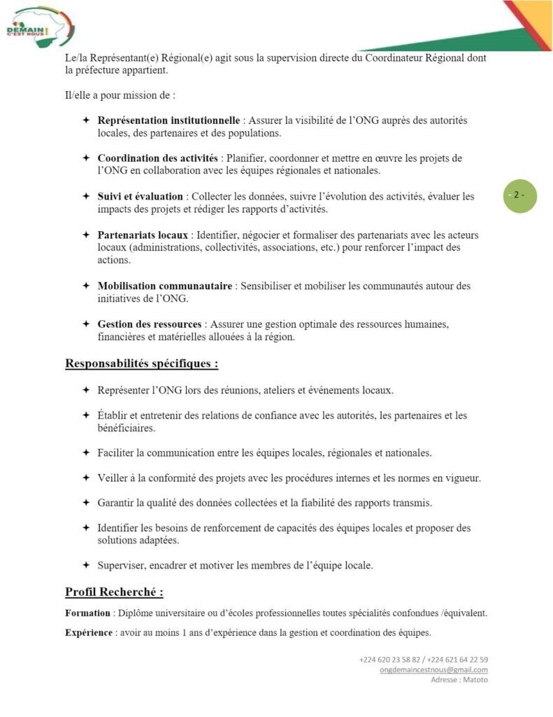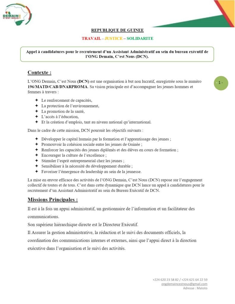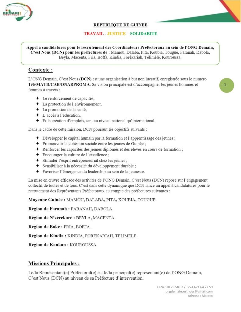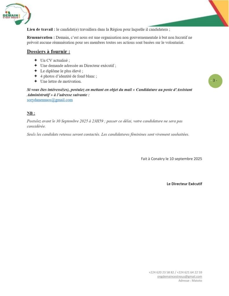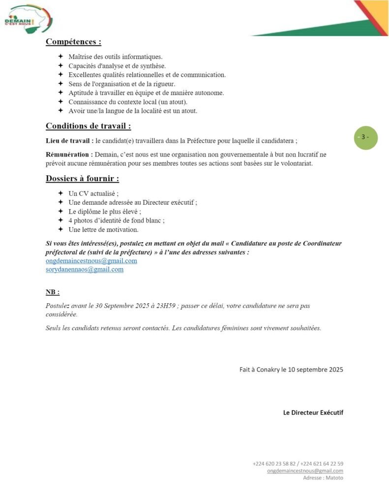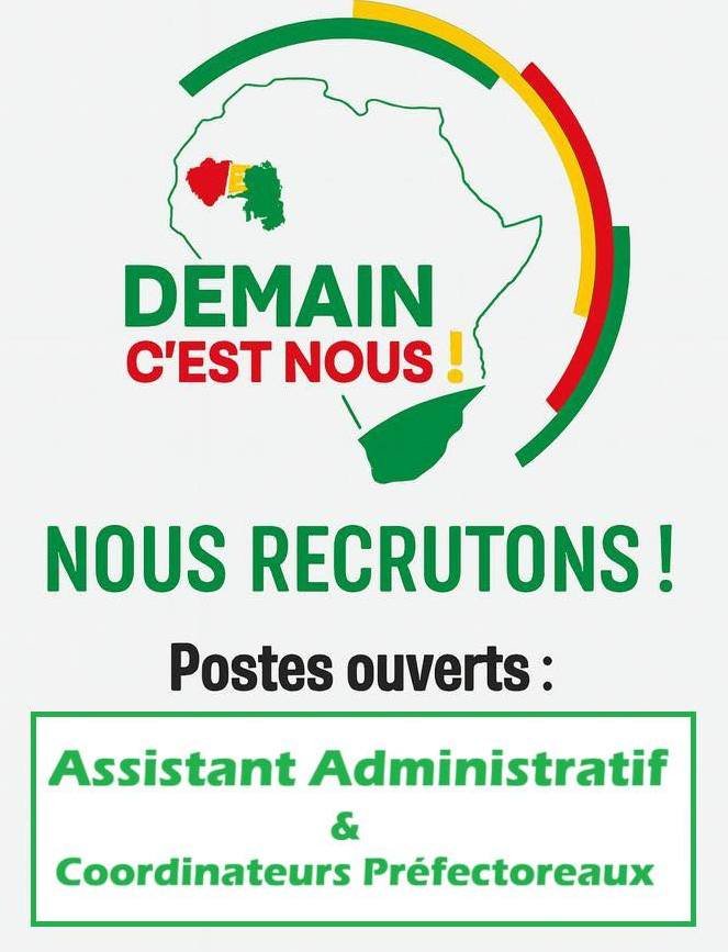 Demain, C’est Nous recrute pour les postes d’Assistant Administratif et de Coordinateurs Préfectoraux :