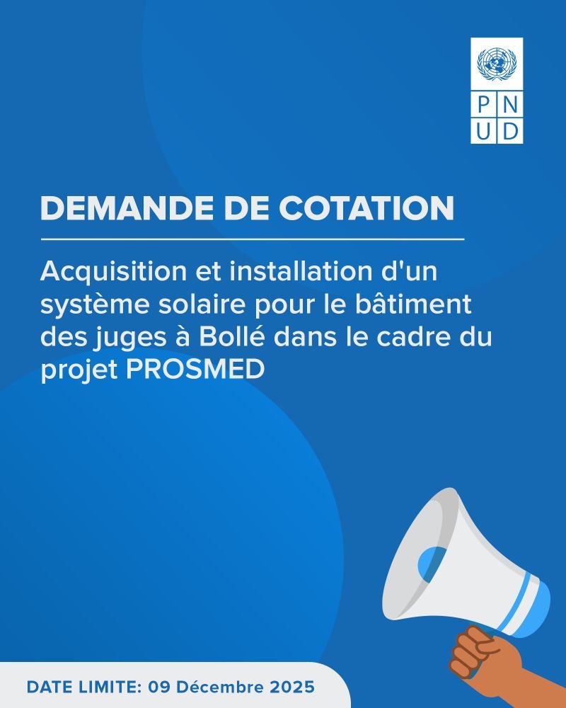 Demande de cotation pour l’acquisition et l’installation d’un système solaire pour le bâtiment des juges à Bollé dans le cadre du projet PROSMED.