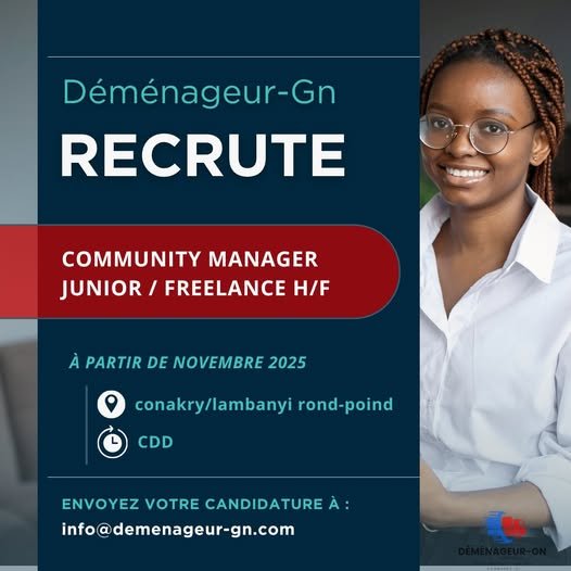 DÉMÉNAGEUR-GN recrute un Community Manager pour gérer et animer ses réseaux sociaux, créer du contenu (posts, stories, vidéos), planifier un calendrier éditorial et renforcer la visibilité de la marque.