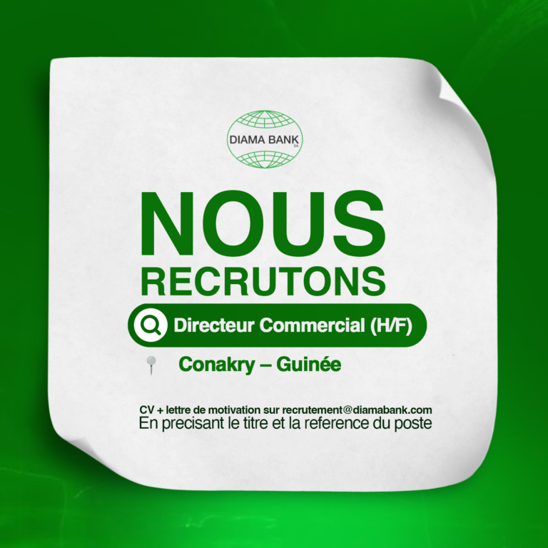 Dans le cadre du renforcement de sa gouvernance et de sa dynamique de croissance, DIAMA BANK SA recrute un(e) Directeur(trice) Commercial(e).