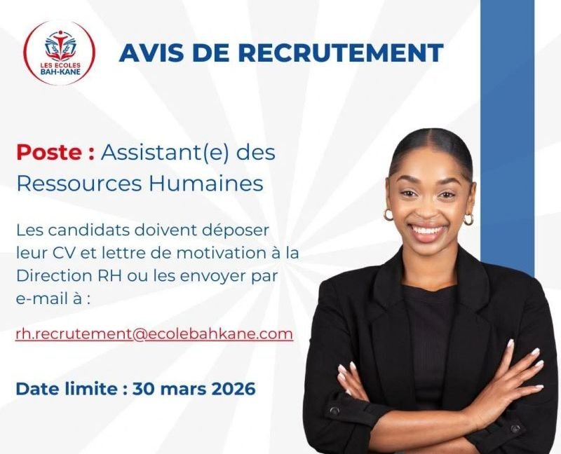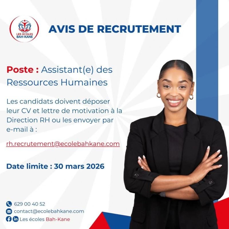 ECOLES BAH KANE RECRUTE ASSISTANT RESSOURCES HUMAINES H/F