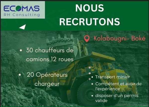 Vous êtes un chauffeur qualifié à la recherche d’un emploi ? Rejoignez notre équipe pour travailler comme chauffeur avec un sous-traitant minier à Kolaboungni !