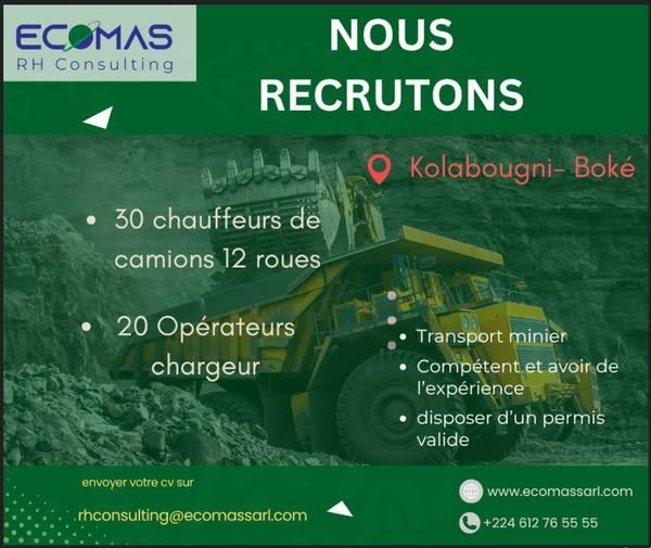 OFFRE D’EMPLOI : NOUS RECRUTONS 30 CHAUFFEURS DE CAMIONS 12 ROUES et 20 OPÉRATEURS CHARGEURS !