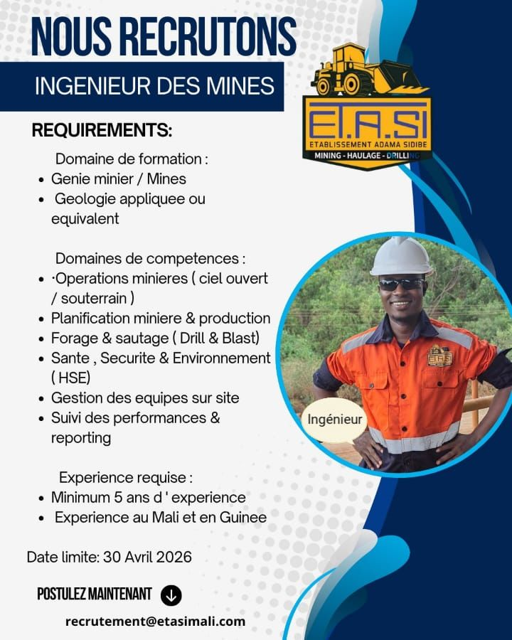 AVIS DE RECRUTEMENT – INGÉNIEUR DES MINES