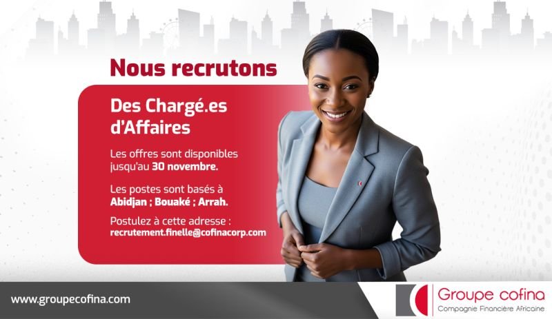 Ou, envoyez votre Curriculum vitae et votre lettre de motivation à l’adresse suivante : recrutement.finelle@cofinacorp.com avant la date du 30 novembre 2025 en précisant « Chargé.e d’affaires » en objet.