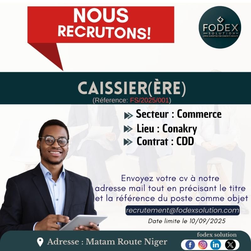 Nous recrutons pour le compte de l’un de nos clients évoluant dans le secteur du commerce, un(e) Caissier(ère) rigoureux(se), organisé(e) et orienté(e) chiffres.
