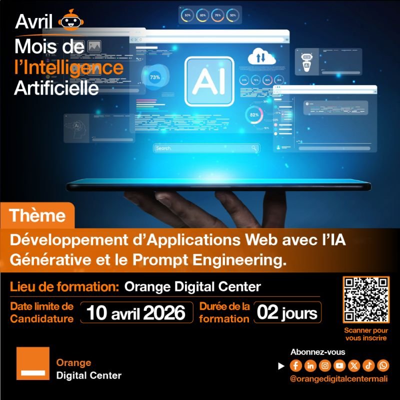 Dans le cadre du Mois de l’Intelligence Artificielle à Orange Digital Center Mali, découvrez comment exploiter les fondamentaux de l’IA pour concevoir des applications web modernes et innovantes.