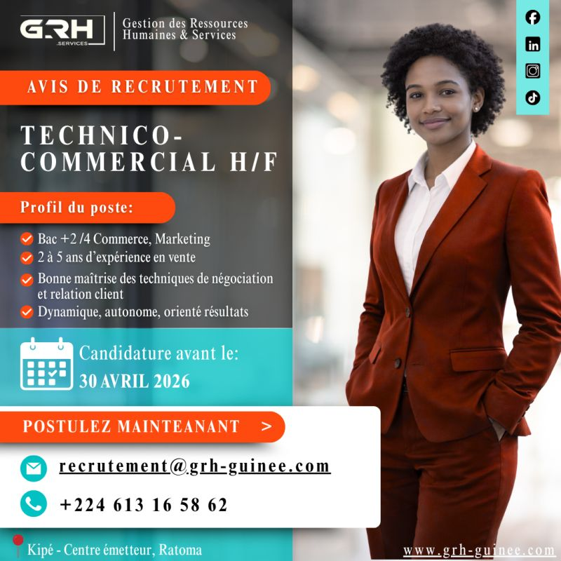 Nous recherchons un Technico-Commercial dynamique pour rejoindre notre équipe commerciale à Conakry. Dans un contexte de forte croissance du secteur commercial guinéen, ce poste stratégique consiste à développer et fidéliser un portefeuille clients tout en apportant une expertise technique sur nos solutions. Le candidat retenu évoluera dans un environnement concurrentiel stimulant où les résultats commerciaux et la satisfaction client sont au cœur des priorités. Cette mission offre l’opportunité de contribuer directement à l’expansion de l’entreprise tout en développant ses compétences commerciales et techniques dans un marché en pleine mutation.