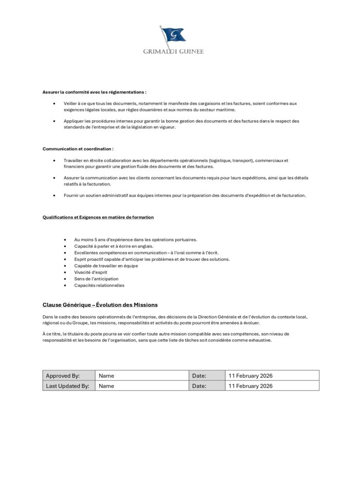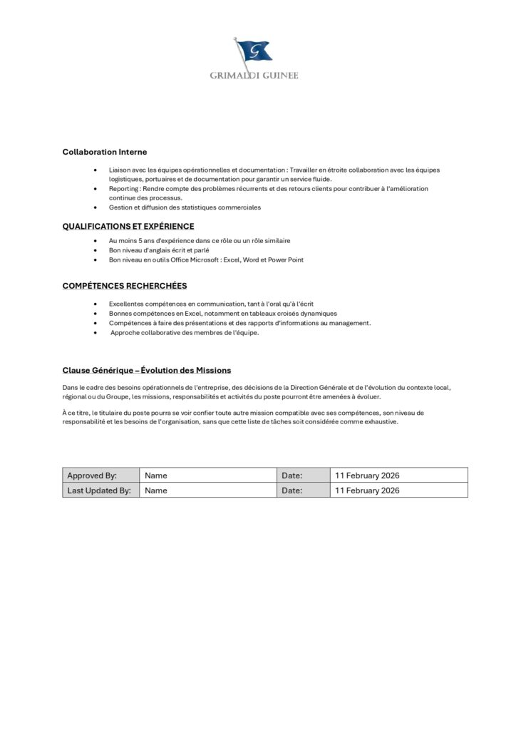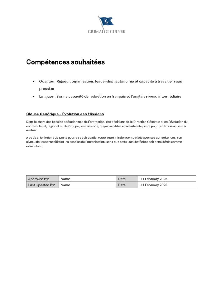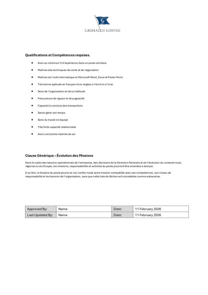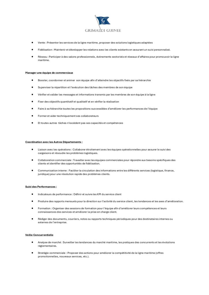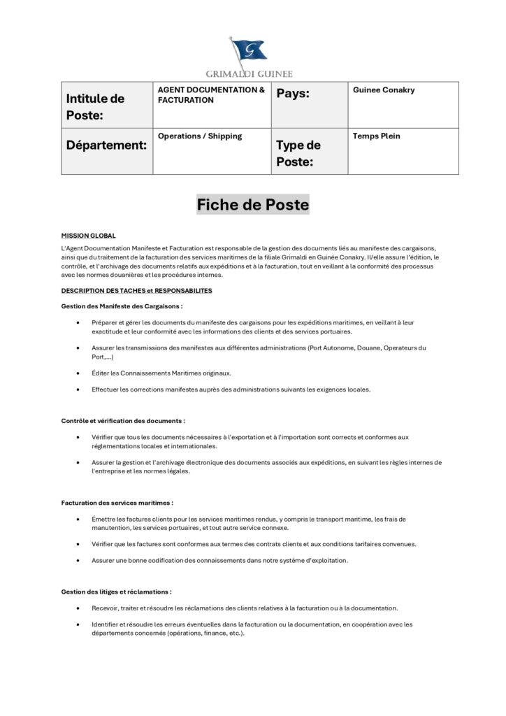 Les candidats intéressés sont invités à envoyer leur CV accompagné d’une lettre de motivation à l’adresse suivante : recruitement@grimaldiguinee.com.