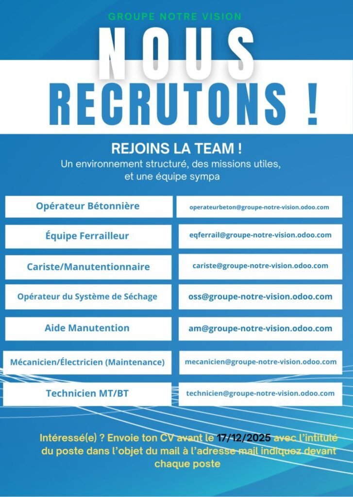 Postuler en envoyant votre candidatures à l’adresse: operateurbeton@groupe-notre-vision.odoo.com