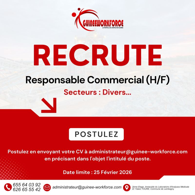 GUINEEWORKFORCE RECRUTE RESPONSABLE COMMERCIAL H/F